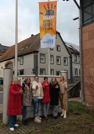 Die Verbandsgemeinde Enkenbach-Alsenborn hisst aus diesem Grund für 16 Tage die Flagge der UN-Kampagne: „Stopp Gewalt gegen Frauen“. Die Gleichstellungsbeauftragte der Verbandsgemeinde Enkenbach-Alsenborn Susanne Busch-Wagner und ihre Stellvertreterin Birgit Roth hissten am Morgen des 25. November die Fahne. Gleiches geschah in Hochspeyer vor dem Verwaltungsgebäude am darauffolgenden Tag mit einigen Mitarbeiterinnen der Verwaltung. In Anlehnung an die Orange Days wurde, für die Beschäftigten, die Möglichkeit geboten eine Schulung mit dem Thema „Frauen stärken – Sicherer Umgang mit Grenzüberschreitungen und herausfordernden Situationen“ zu besuchen.